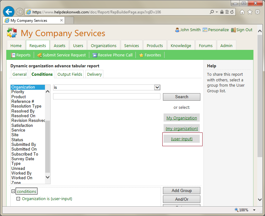 You can create a dynamic report that prompts you for parameter before you run it. This is an example that shows you how to create one with the Organization parameter.