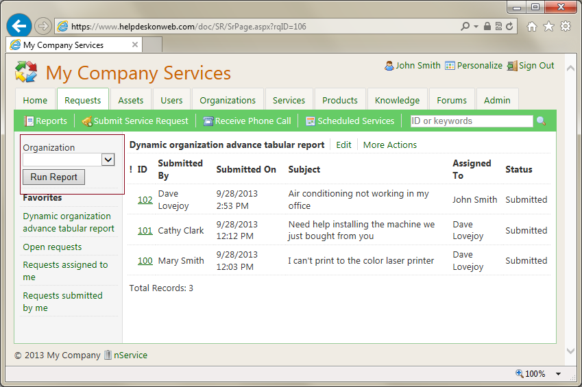 3. You can now select an organization and Run the report on the Requests tab.