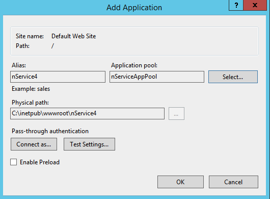 To move the database, back it up and restore it on the new DB server. Go back to IIS Manager, select nService4 on the left panel, double click the connection string icon on the right pane. Correct the data source and the database if needed. You can also clone the database first, then update the database connection string in \inetpub\wwwroot\nService4\web.config before step #3 above.